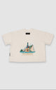 Camiseta UNISEX de manga corta color Ivory o Marfil Boxy Fit, hecha en algodón premium de alto gramaje. La camiseta tiene cuello redondo en rib y estampado trasero de ilustración propia y exclusiva del anime "Full Metal Alchemist: Brotherhood".